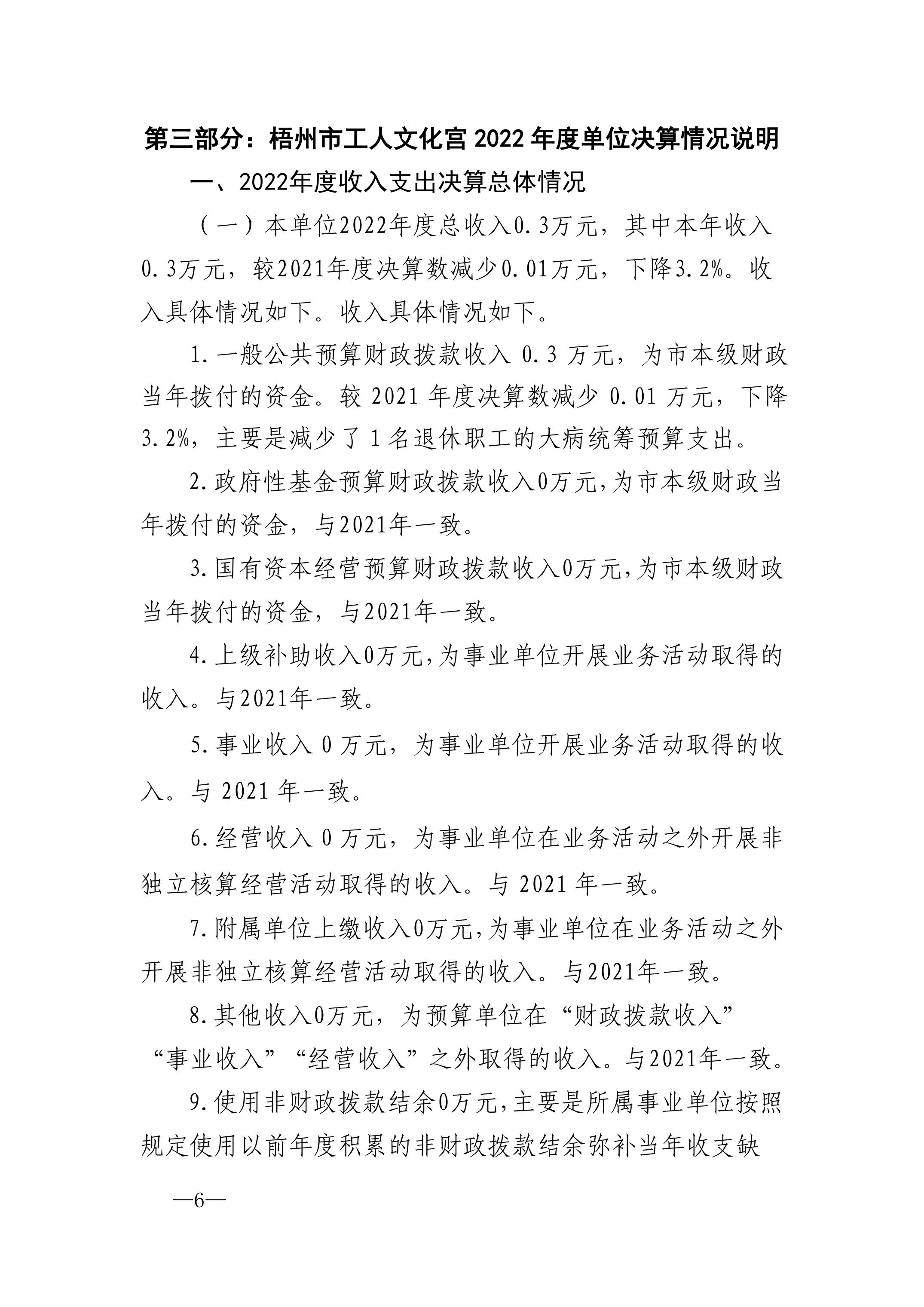 梧州市工人文化宮2022年度單位決算公開報(bào)告