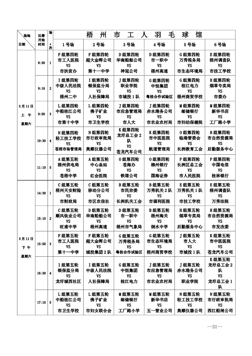 2019 年全市職工氣排球男女子混合比賽秩序冊